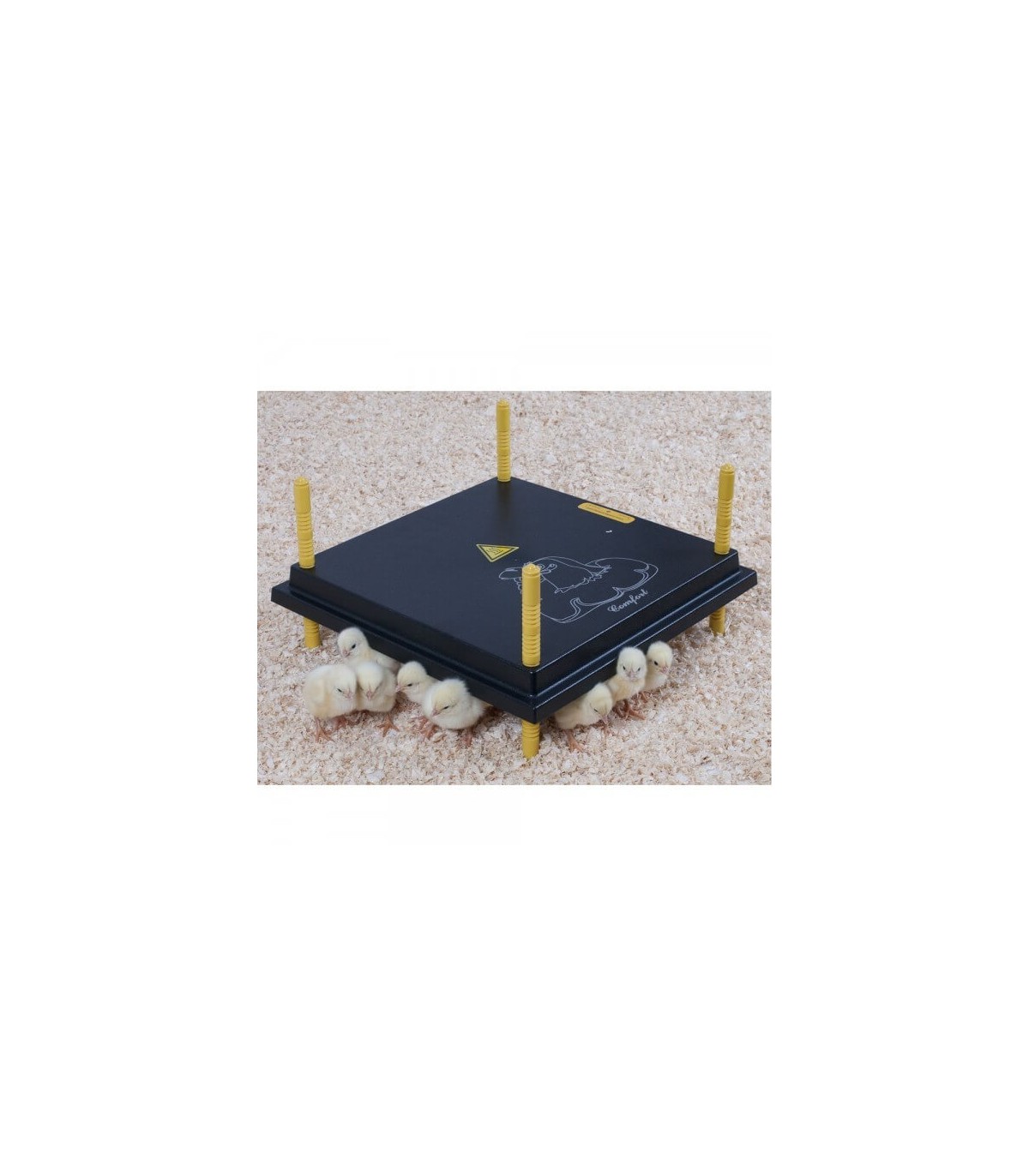 Grande plaque chauffante pour maintenir les poussins nouveaux nés au chaud une fois sortis de la couveuse.