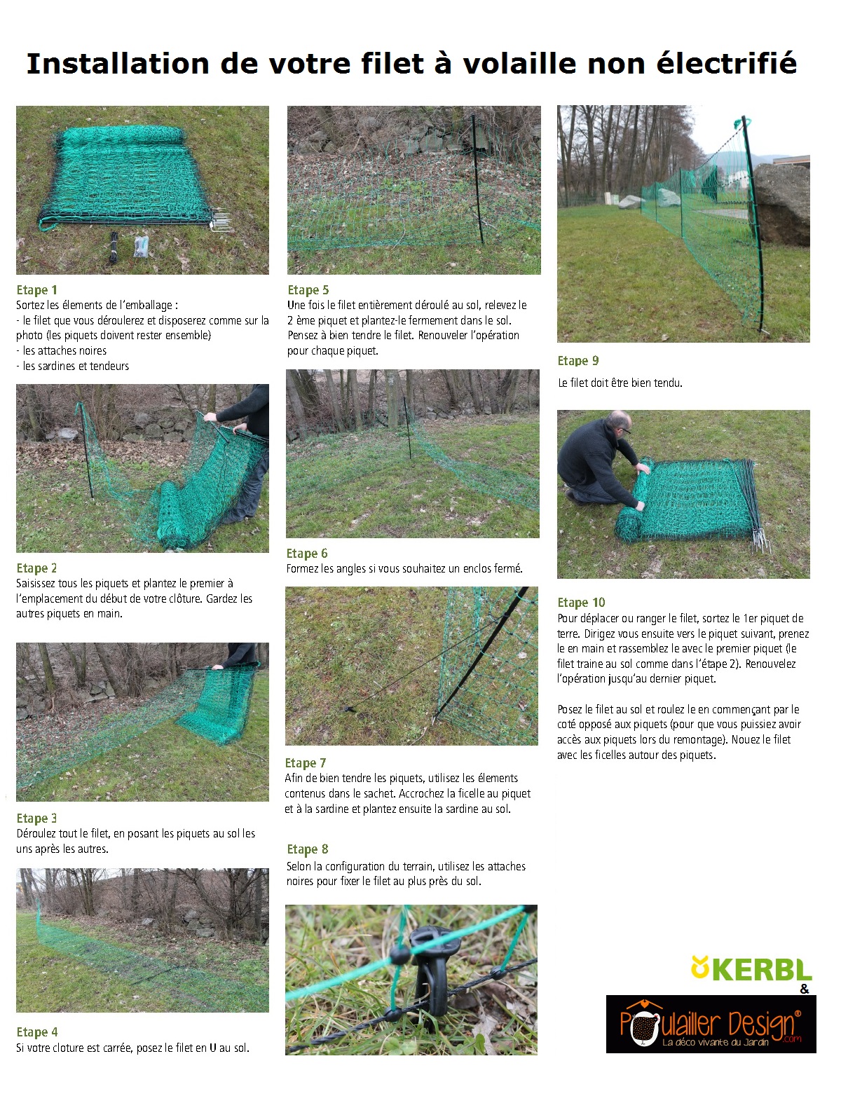 Filets tout équipés et prêts à installer, idéal pour réaliser des enclos à poules très simplement et rapidement.