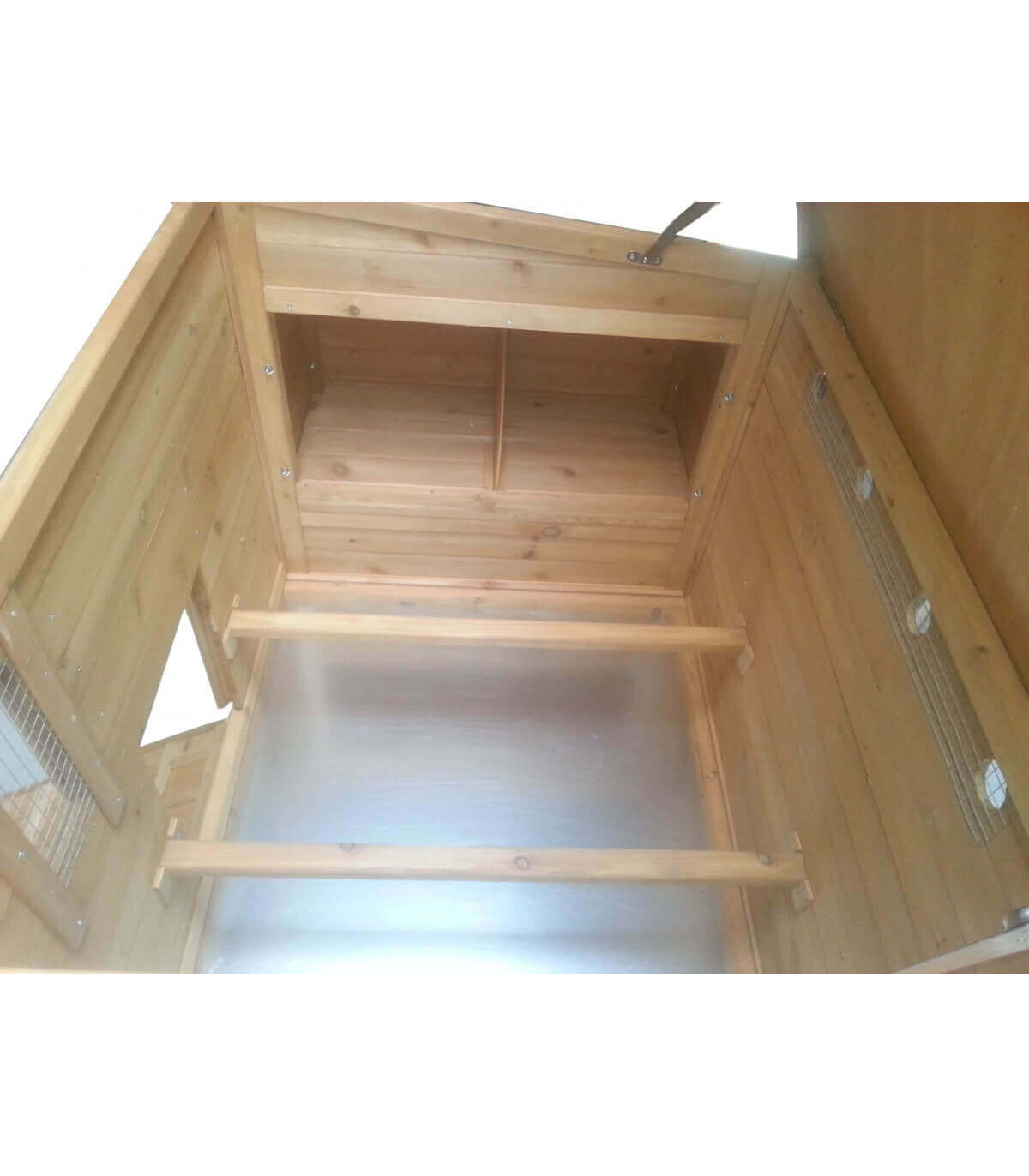 - Toit entièrement ouvrant, utile pour évacuer les fortes chaleurs de l'été, nettoyer le poulailler ou y attraper une poule.