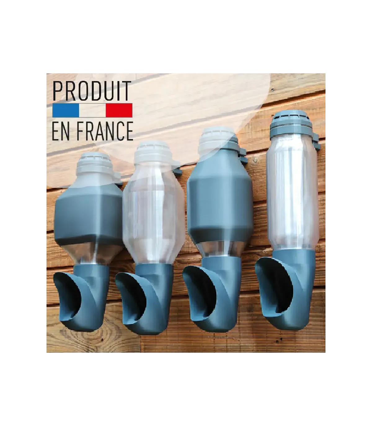 Elle se décline en version transparente (résistant aux UV) et en version gris anthracite, avec zone translucide de visibilité qui permet de contrôler visuellement le niveau de grain sans avoir à ouvrir le réservoir.