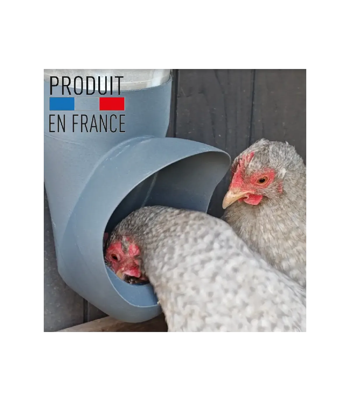 Mangeoires made in France, capacités 3.5 l et 5.5 L idéales pour nourrir économiquement et proprement de 3 à 6 poules.