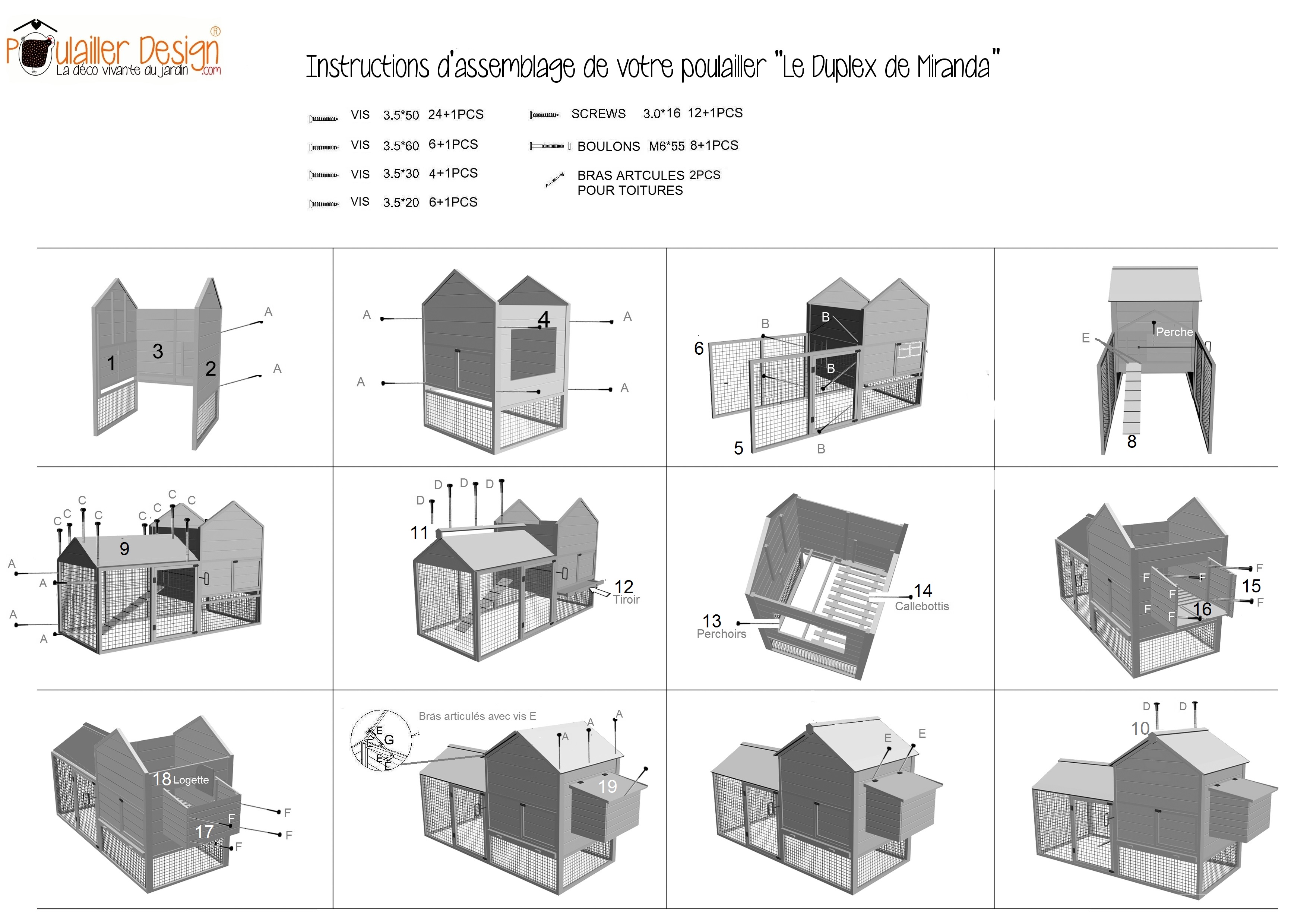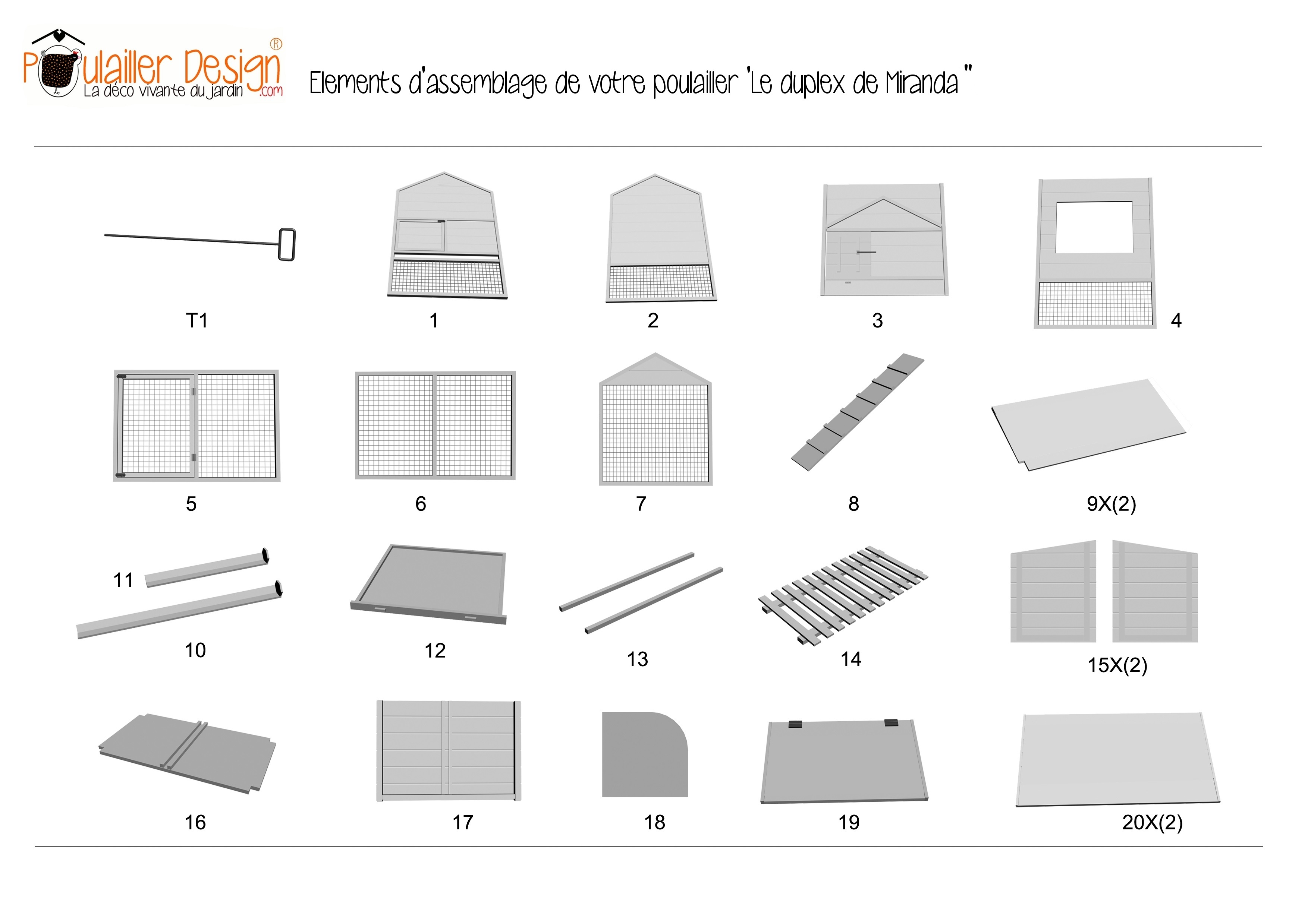 Ce poulailler présente les mêmes caractéristiques et équipements que la version grand poulailler Duplex de Miranda XL toitures bitumées.